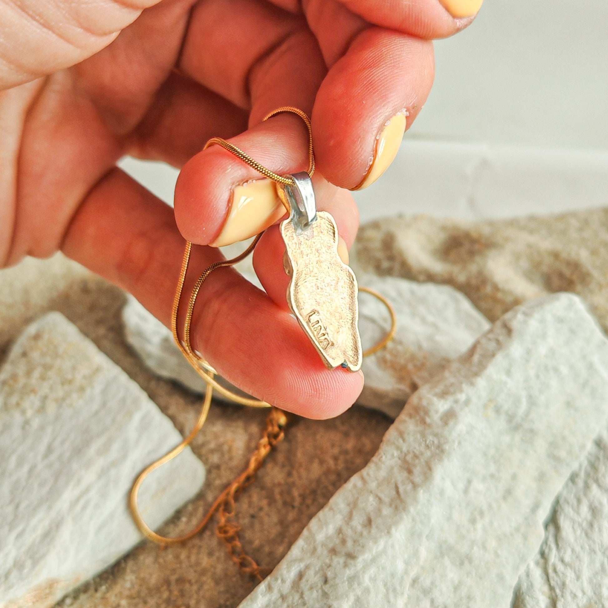 Gold tone / Silver tone — jewelry bronze pendant on a surgical steel chain
